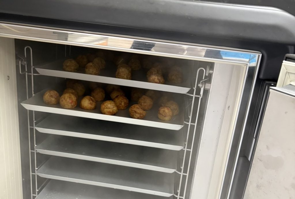 基本のルールは「焼きたてをすぐに冷凍する」ことです。焼き上がり直後にアートロックフリーザーに入れることで、水分をしっかり閉じ込め、外はふわふわ、中はとろっとした状態を保てます。凍結時間は最大量を入れても1時間弱。2日に1回ほど、2〜3回転させています。「余ったものを冷凍すればいいのでは」と考えたこともありましたが、時間が経つと湯気とともに風味が抜けてしまいます。そのため現在は焼きたてのみを冷凍しています。