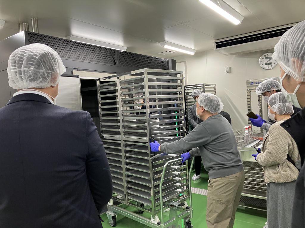 冷凍機見学では、大型アートロックフリーザーの内部や運用の様子を間近で確認。実際にカートを投入する実演も行われ、参加者の関心を集めました。また、実際の使い勝手について、杉本工場長は以下のようにコメントしました。