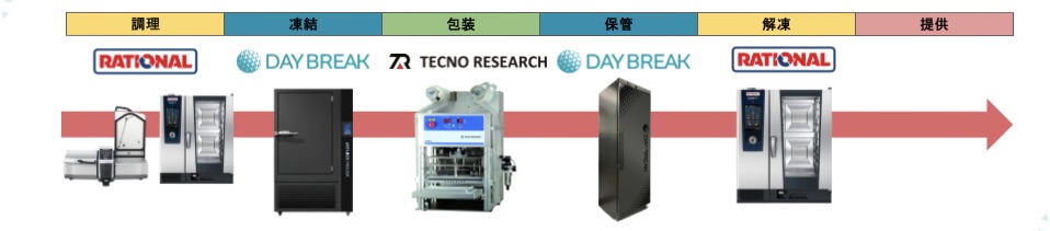 「FOOMA JAPAN 2026」 のデイブレイクブースでは、デイブレイク、ラショナル・ジャパン、テクノリサーチの3社連携のもと、以下の工程を一連の流れとして実演します。