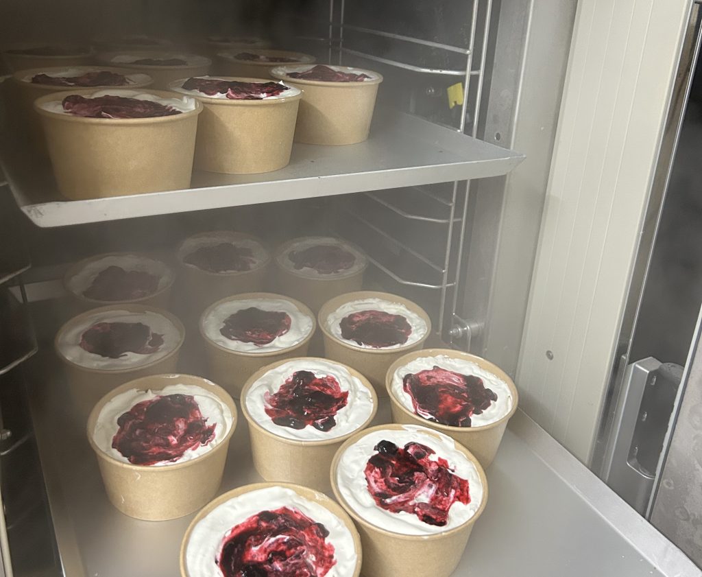 お店の通販では、アートロックで凍結した冷凍スイーツを販売しています。ジャムやクッキーは常温ですが、それ以外は冷凍。近々、「冷凍ケーキカップ」という新商品を発売予定です。ポップアップを4回ほど試したところとても評判が良く、いよいよ正式に販売を始めるところです。フレーバーは5種類、価格は1,500円(+送料)。常温で2時間、冷蔵で6時間ほどで解凍できます。半解凍でアイスケーキのようにもお召し上がりいただくの好評だったので、完全に解凍したふわふわのケーキと半解凍のアイスケーキ。2つの食べ方を提案しようと考えています。