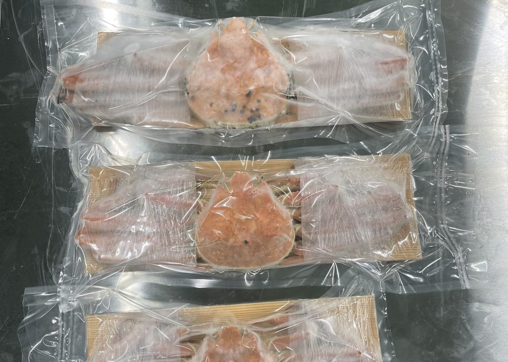 魚や貝類など様々な魚介を加工販売していますが、冷凍の主力はカニです。ベニズワイガニとホンズワイガニを扱っており、11月の解禁直後に仕入れたものを冷凍ストックし、年末に販売。比較的購入しやすく価格が安い時期に確保しておけるので、安定した販売が可能になりました。