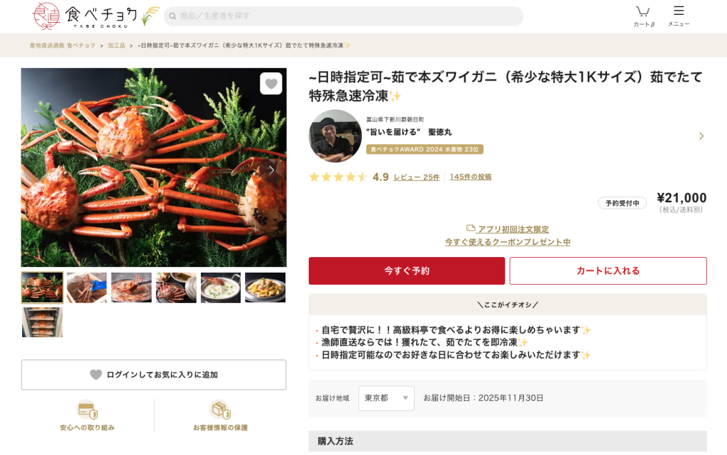 最初は市場への出荷が中心でしたが、コロナ禍を機に「食べチョク」などの産直サイトを活用し、直販に軸足を移しはじめました。外食の機会が減り、「自宅で取り寄せて楽しむ」というスタイルが定着したことで、注文が急増。リピーターのお客様も増えていきました。自分の獲った魚やカニを直接お客様に届けることができ、「美味しかった」「また頼みたい」という声が届くと励みになります。