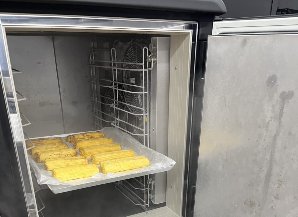 店舗とは別に、アートロックフリーザーとスチコンを置いた小さな加工場があり、そこでは営業に出ない社員が、朝9時から夕方5時まで仕込みを担当。私たちも忙しい時は手伝います。役割分担がはっきりして、無駄な時間がなくなりました。