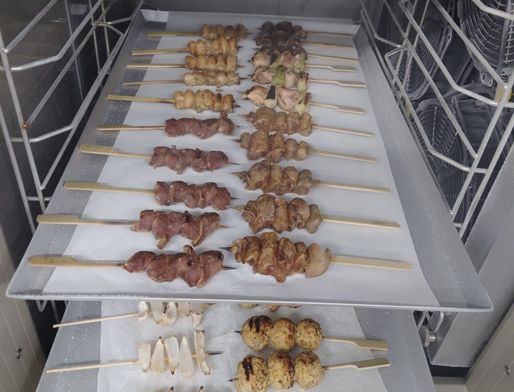 「やきとり 和笑」の味をそのまま再現した焼き鳥を店舗以外にも届けられないかと、持ち帰りやECといった新しい販売チャネルの開拓を考えたことがきっかけです。品川ショールームで実際に焼き鳥を冷凍して解凍後に食べてみたところ、食感や香りがしっかり残っていて驚きました。事業再構築補助金を活用して、約3年前にアートロックフリーザーを導入。冷凍商品の製造だけでなく店の営業そのものにも活かせないか、いろいろと研究しています。
