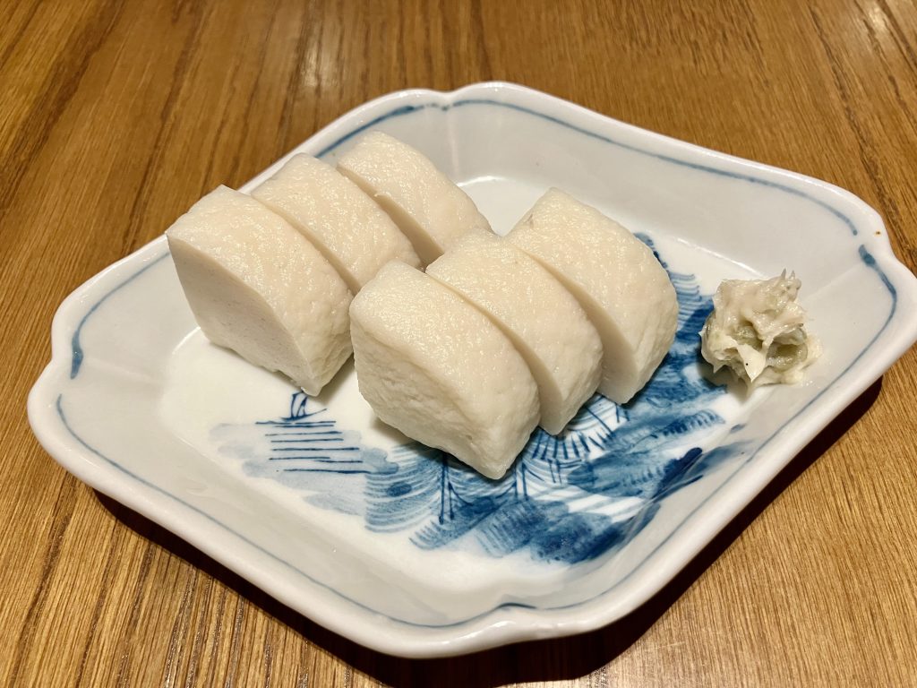 「蕎麦前山都」の六本木ヒルズ店を立ち上げた8年前から、井上蒲鉾店さんのかまぼこを使わせていただいています。魚の味が濃くて、こだわり抜かれた個性のあるかまぼこという印象で、井上蒲鉾店さんは基本的に飲食卸をされていない中で、ご縁があって仕入れさせていただくことになりました。当初は生のかまぼこを使っていましたが、7年ほど前に冷凍を始められたと聞き、冷凍に切り替えた、という経緯です。
