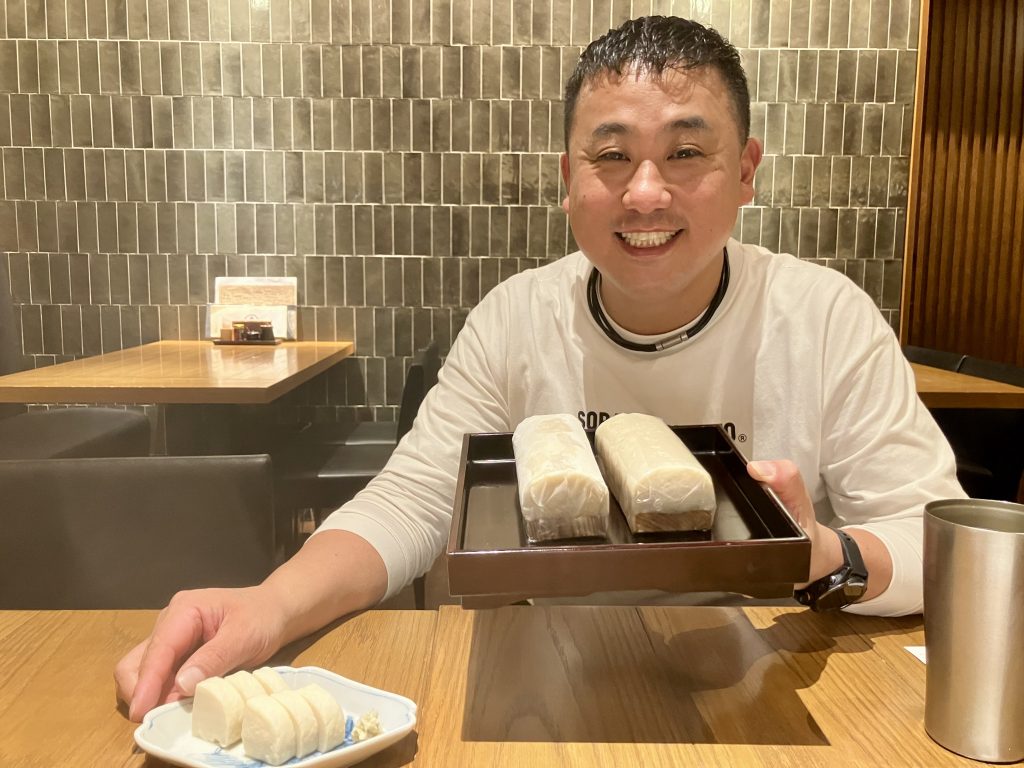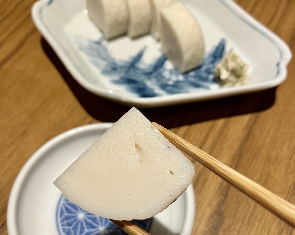 正直に言うと、冷凍で味が変わっていたら仕入れなかったと思います。でも、井上さんのかまぼこは、冷凍しても味が全然ブレません。全く差がないとは言い切れないかもしれませんが、お客様にお出ししても全く問題のない品質です。かまぼこは冷凍すると、「す(小さな空気の穴のようなもの)が入る」「食感が悪くなる」とよく言われますが、そういった劣化は一切見られませんでした。食感も、魚の味も、ここまで残るのは本当にすごい。圧倒的に品質レベルの高いかまぼこだと思いますし、冷凍技術による部分も大きいのではないかと感じています。