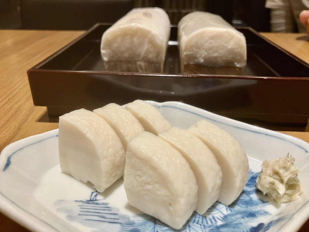 正直に言うと、冷凍で味が変わっていたら仕入れなかったと思います。でも、井上さんのかまぼこは、冷凍しても味が全然ブレません。全く差がないとは言い切れないかもしれませんが、お客様にお出ししても全く問題のない品質です。かまぼこは冷凍すると、「す(小さな空気の穴のようなもの)が入る」「食感が悪くなる」とよく言われますが、そういった劣化は一切見られませんでした。食感も、魚の味も、ここまで残るのは本当にすごい。圧倒的に品質レベルの高いかまぼこだと思いますし、冷凍技術による部分も大きいのではないかと感じています。
