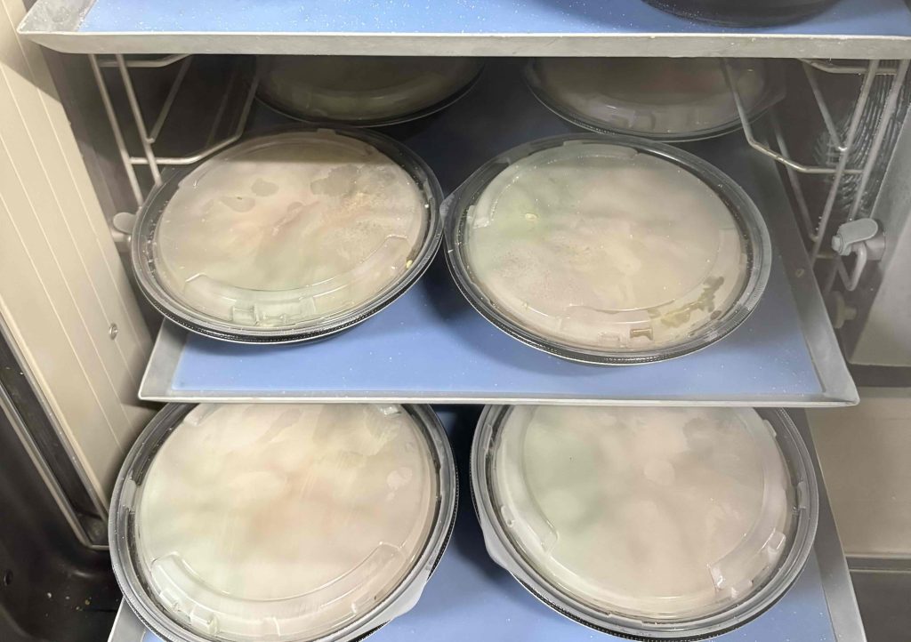 ご飯と具材を盛り付けて、うなぎの香りを閉じ込めるために蓋をした状態で冷凍しています。ご飯とうなぎを後から合わせるのではなく、そのまま電子レンジで解凍できる設計です。品質面では問題なく仕上がっていますが、今後は凍結スピードの向上に向けて改善の余地があるかもしれません。