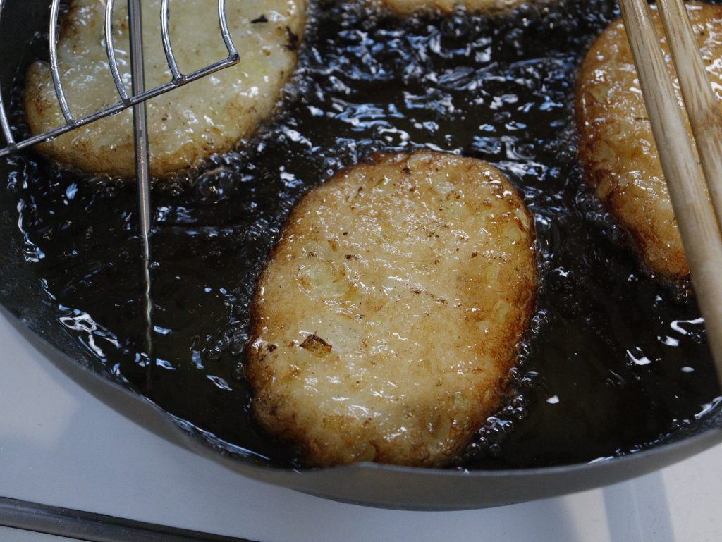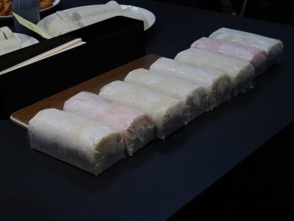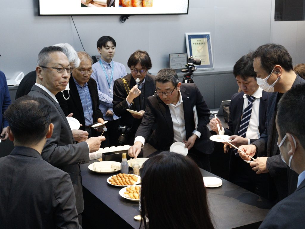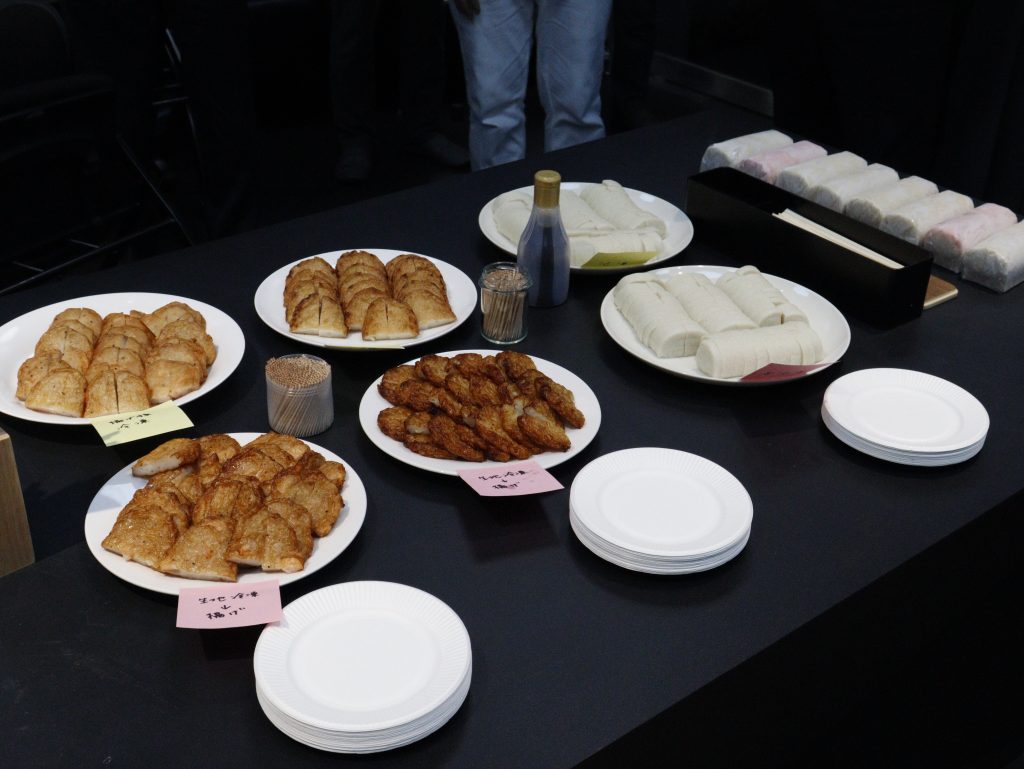 また、同じくアートロックフリーザーの導入ユーザーである丸一土井水産が手掛ける冷凍さつま揚げ(※)の試食も実施。揚げる前の状態で冷凍し、直前に揚げたものと、揚げたてを冷凍したものの2種類を提供しました。参加者からは、「どちらも美味しい」と高く評価され、用途によって応じた冷凍活用の可能性が示されました。